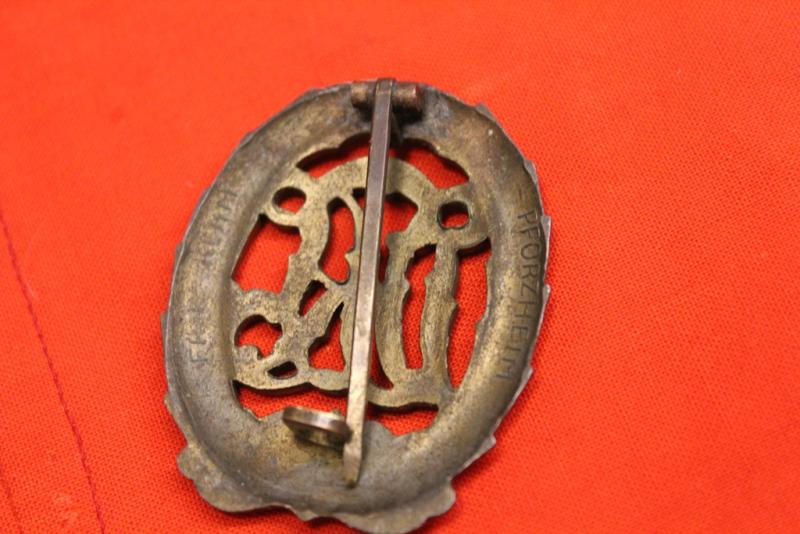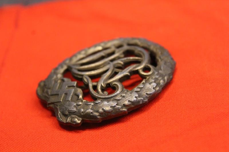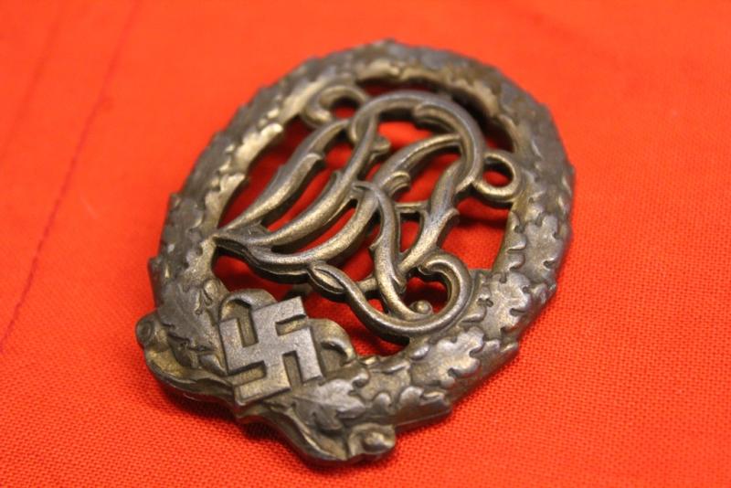 Genuine DRL Sport Badge in German- Deutscher Reichsbund für Leibesübungen- looks very good with old patina on the back maker details. Good for display