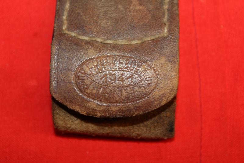 Overall in good looking condition. Eagle was remove ( was used after the War). Belt buckle maker marked and dated 1941, leather tab also with maker details and dated 1941