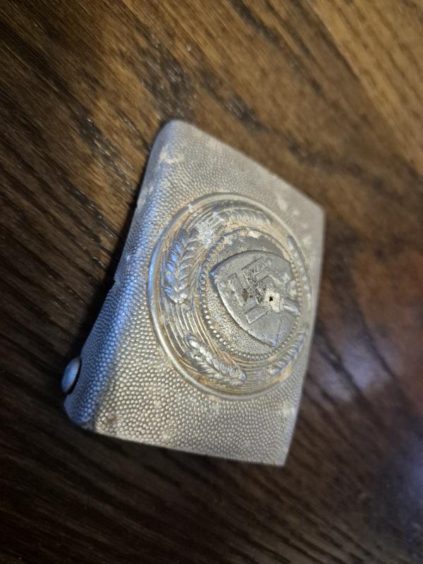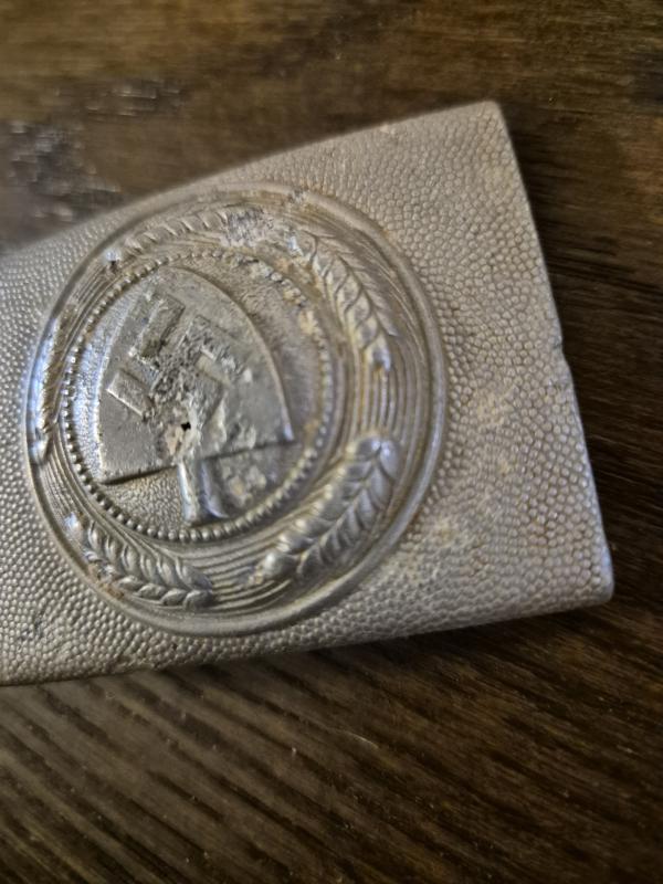 Complete belt buckle with maker code N&H for Noelle& Hueck of Ludenscheid. Dated 1938.