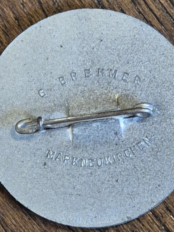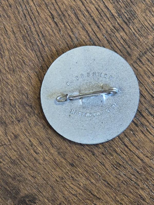 A 1937 Nazi Party Rally Day badge (Reichsparteitag Tinnie). These were commemorative badges issued for the annual Nazi Party rallies held in Nuremberg, Germany.